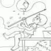 Spalvinga žvejyba. Nuyspalvink žvejojantį berniuką ir žuvį.
