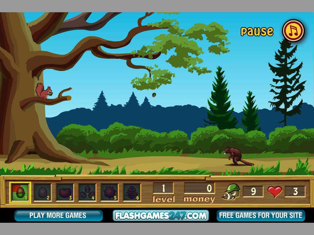 Vilage defence. Bebrai puola medį ir nori jį sugraužti. Nemokamas Flash SWF žaidimas internete. Atsisiųsti nereikia.