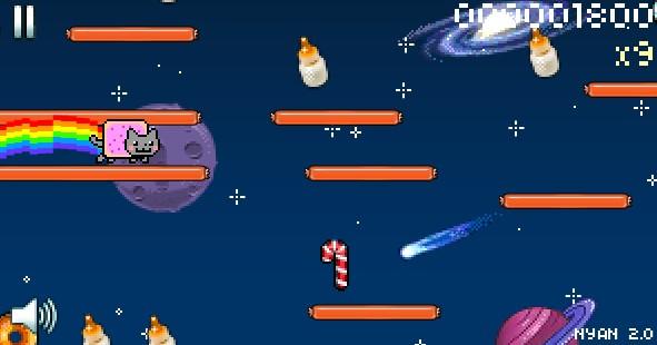 Nyan katino žaidimas. Ar žinai kas yra Nyan katinas? Jei žinai, tikrai norėsi sužaisti šį katino žaidimą. Čia tau reiks tik šokinėti ir surinkti kuo daugiau daiktų.